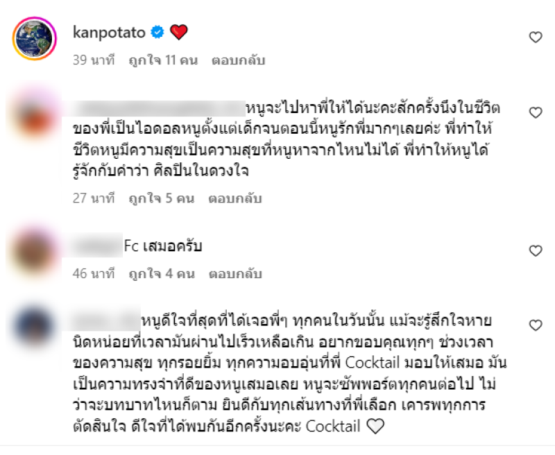 และสำหรับในช่วงสองปีสุดท้ายนี้ เราตั้งใจที่จะสร้างและทำในสิ่งต่าง ๆ ที่เรายังไม่เคยทำ ออกไปเจอกับทุกคนให้มากที่สุดและใช้เวลาที่มีในฐานะ COCKTAIL อย่างคุ้มค่าเท่าที่จะทำได้ เราจะมีงานคอนเสิร์ตแบบใกล้ชิดเป็นพิเศษในเดือนพฤษภาคมที่จะถึงนี้ รับงานจ้างการแสดงใด ๆ รวมถึงร่วมเล่นในเทศกาลดนตรีใด ๆ ในปีนี้เป็นปีสุดท้าย หลังจากนั้นในปี 2025 ก็จะเข้าสู่คอนเสิร์ตใหญ่และการเดินสายอำลาของเราอย่างเป็นทางการซึ่งจะได้เล่ารายละเอียดให้ฟังในโอกาสต่อไป