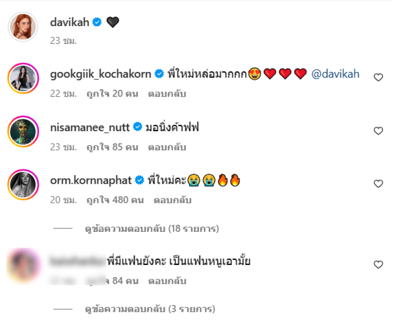 ท่ามกลาง แฟนคลับเข้ามาแสดงความคิดเห็นกันเพียบ เช่น พี่มีแฟนยังคะ เป็นแฟนหนูเอามั้ย,ว้าวววเท่ห์สุดๆๆไปเลยค่า,หล่อๆแบบนี้ มีแฟนอ๊ะยัง ,หล่อมาก จีบได้ป่าว ,แล้ววหล่อมากกกก โอเอ็มจีมากกค่ะพี่ใหม่,หล่อมากคับบ เป็นต้น