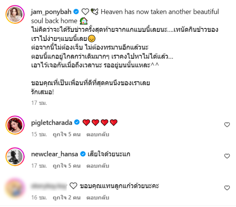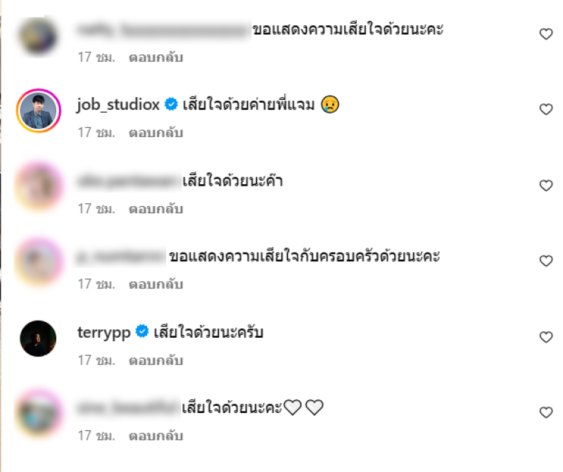 ท่ามกลาง เพื่อนๆและแฟนๆร่วมแสดงความเสียใจด้วยจำนวนมาก ทางทีมข่าวก็ขอแสดงความเสียใจด้วยนะคะ