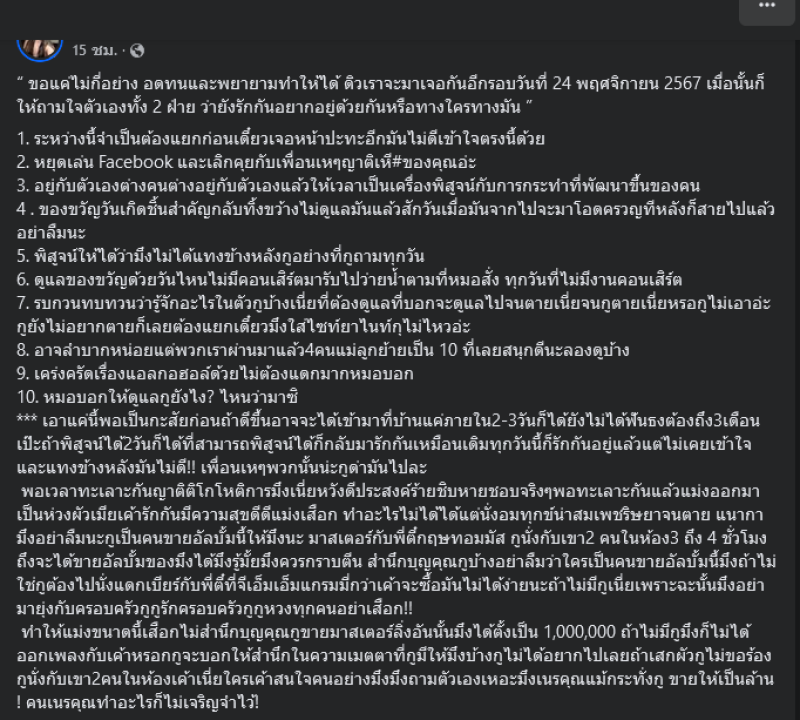 7. สามเดือนก็คือวันที่ 24 พฤศจิกายนมาฟอลโล่อัพกันอีกทีนึงนะคะว่าได้อยู่ด้วยกันใหม่ หรือจะต้องทางใครทางมันแล้วแต่ว่าทางเสก โลโซจะจัดการปัญหาครอบครัวได้มากขนาดไหน