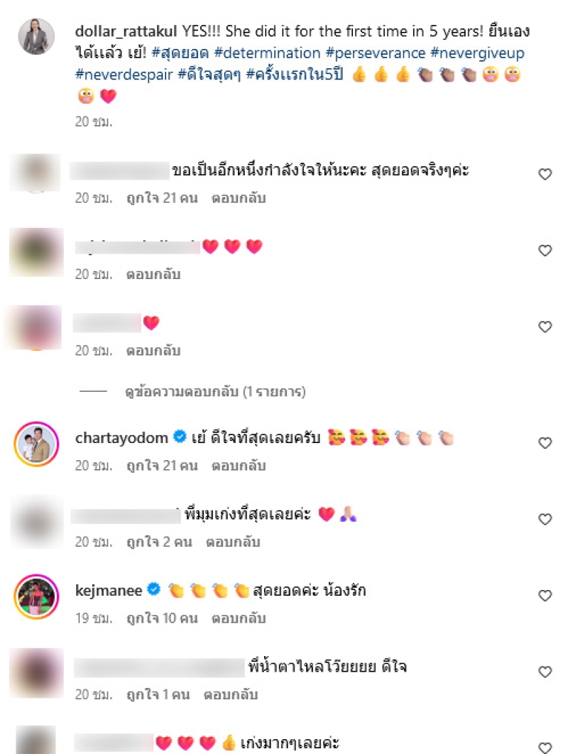 ล่าสุด นายพลดอลล่าร์ ได้โพสต์อินสตราแกรม เผยนาทีน่าประทับใจที่ภรรยายืนเองได้แล้ว ระบุแคปชั่นบอกว่า YES!!! She did it for the first time in 5 years! ยืนเองได้เเล้ว เย้! #สุดยอด #determination #perseverance #nevergiveup #neverdespair #ดีใจสุดๆ #ครั้งเเรกใน5ปี ท่ามกลางคนบันเทิงและแฟนคลับแสดงความยินดี ชมความเก่งของคณหญิงแมงมุมจำนวนมาก