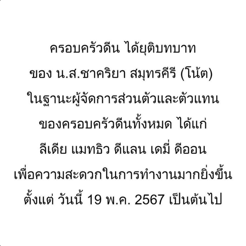 ยอมรับสภาพยังคงต้องคุยกันภายใน ยังช็อกและเสียใจอยู่ ไร้การติดต่อจากอีกฝ่าย ถือว่าเป็นบทเรียนราคาแพง รักมากเจ็บมาก ก่อนหน้านี้เสียใจไม่พร้อมที่จะพูด เรื่องดำเนินคดีขอเก็บเป็นเรื่องภายใน เชื่ออีกหลายคนที่เจออยู่ในสถานการณ์เดียวกัน ขอเดินหน้าทำงานต่อไปดีกว่า ตอนนี้สบายใจรับงานเองภายในครอบครัวและต้องรอบคอบกว่าเดิม