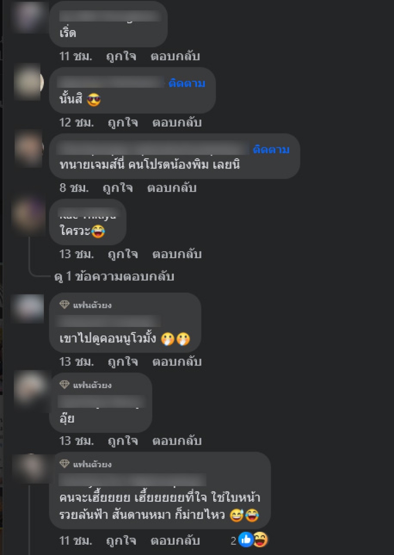 งานนี้ทำเอาแฟนๆและลูกเพจเข้ามาคอมเมนต์กันสนั่น อาทิ เปิดตัวแล้วววว,เห็นมะกี้,ค่ะ แอดมินครูไพรบูรณ์,ผู้ชายแบบนี้มีเยอะคะ,ผัวใครพ่อใครไหนเล่า,คนจะเฮี้ยยยย เฮี้ยยยยยที่ใจ ใช่ใบหน้า รวยล้นฟ้า สันดานหมา ก็ม่ายไหว เป็นต้น