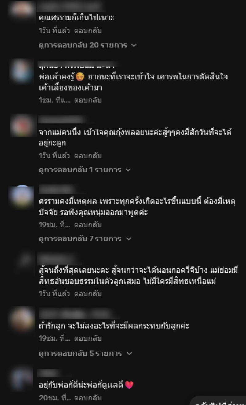และได้เขียนข้อความประกอบภาพคือ มาไม่เจอลูกที่โรงพยาบาล แม่มาเยี่ยมลูกได้แค่นี้ป้อมยาม แม่รักลูกนะคะวีจิ ท่ามกลางแฟนๆเข้ามาคอมเมนต์มากมาย อาทิ เหมือนศรรามจะกลัวลูกรักแม่มากกว่าตัวเอง,ไม่ว่าจะอย่างไร บุตรย่อมเป็นบุตรอันชอบธรรมของมารดา สู้ๆนะคะ,เราเห็นใจในความเป็นแม่ของกุ้งพลอยมากๆ เหมือนไม่มีสิทธิ์จะดูแลลูกได้ แม้ยามไม่สบายไม่ได้กอดให้กำลังใจลูกเลย คงอึดอัดใจมากๆที่ไม่ได้ดูแลลุกยามลูกไม่สบาย เป็นต้น