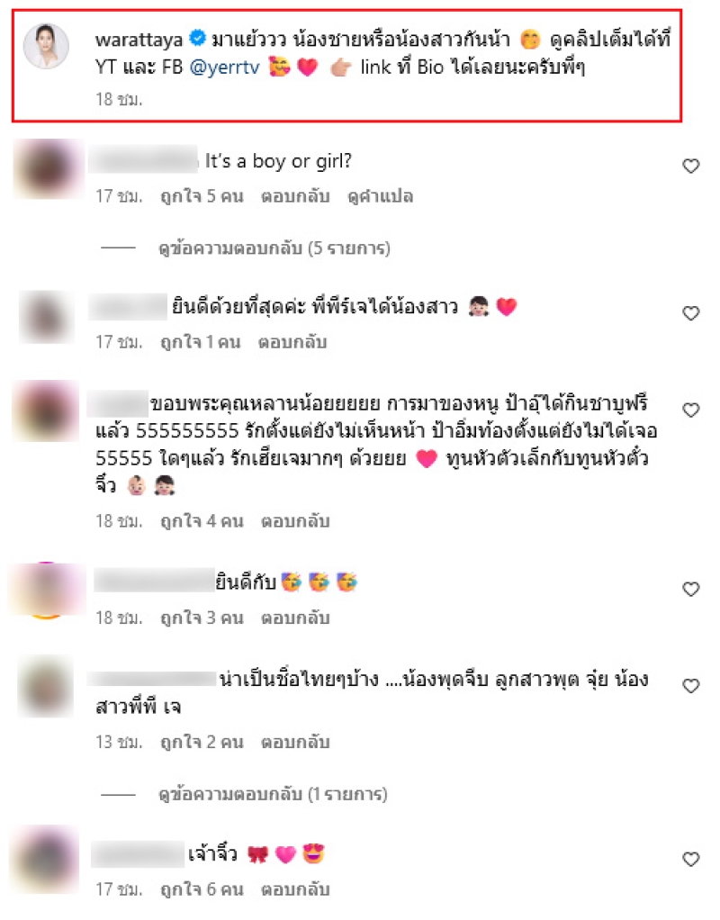 ล่าสุด พุฒ-จุ๋ย ได้ออกมาเฉลยเพศลูกคนที่ 2 เเล้ว ขณะที่ทั้งคู่ได้รวมตัวเเก๊งเพื่อนๆไปเที่ยวที่ทะเลหัวหินเเละถือโอกาสนี้บอกข่าวดีกับเพื่อนๆด้วยซะเลย โดยท้องนี้ได้ลูกสาว บอกเลยว่าได้สมใจทั้งคู่สุดๆ