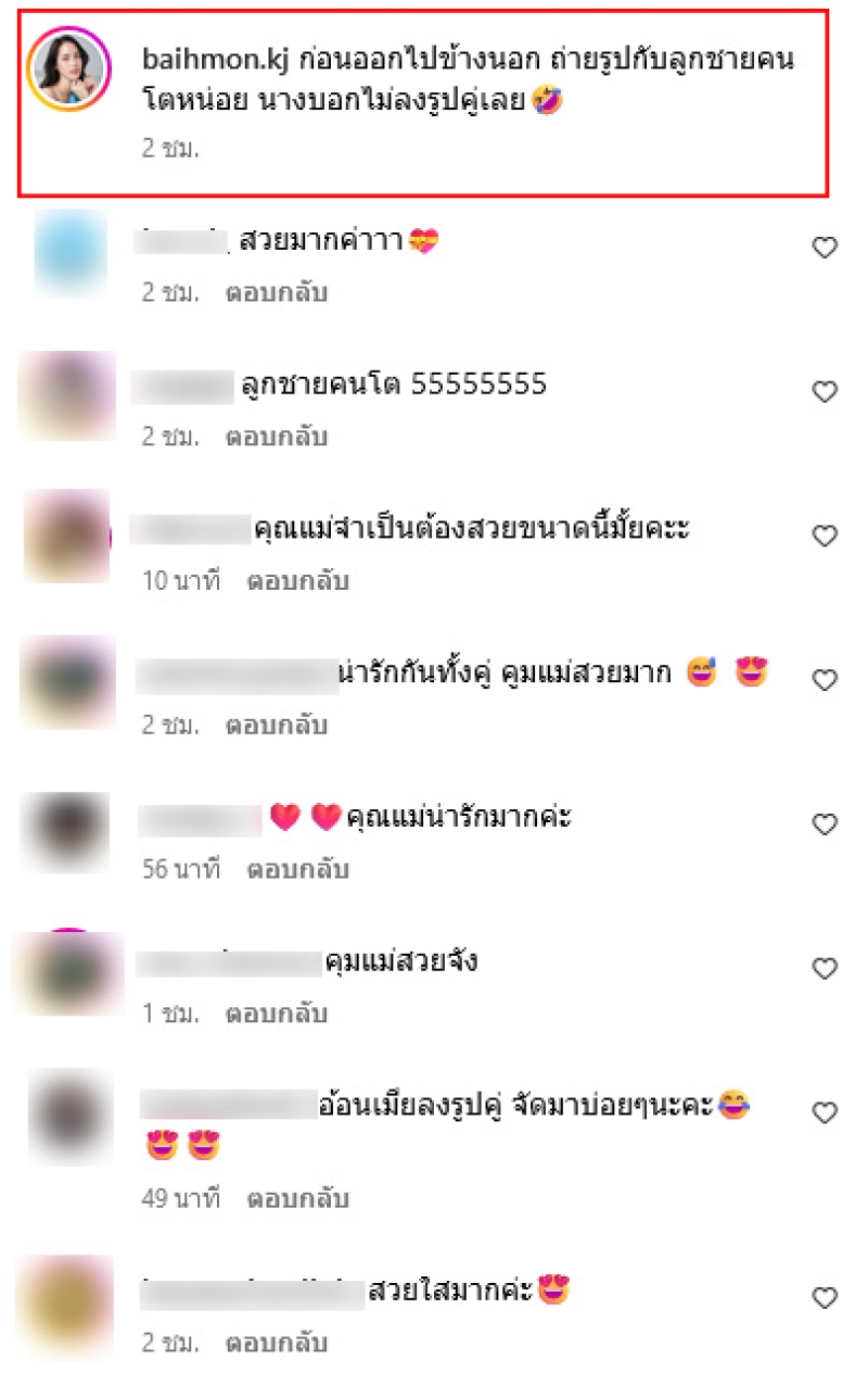 ล่าสุด ใบหม่อน ได้โพสต์ภาพโมเมนต์หวานกับ แจ็ค ในอินสตาแกรมโดยสวมชุดเดรสสีขาว พร้อมกับเเคปชั่นว่า ก่อนออกไปข้างนอก ถ่ายรูปกับลูกชายคนโตหน่อย นางบอกไม่ลงรูปคู่เลย ท่ามกลางแฟนๆแห่เข้ามาคอมเมนต์ชื่นชมหุ่นคุณแม่ว่าสวยมาก แต่ทั้งนี้ยังถ่ายติดทะเบียนรถป้ายแดงอีกด้วย งานนี้คอหวยซูมกันให้ชัดๆเลยจ้า