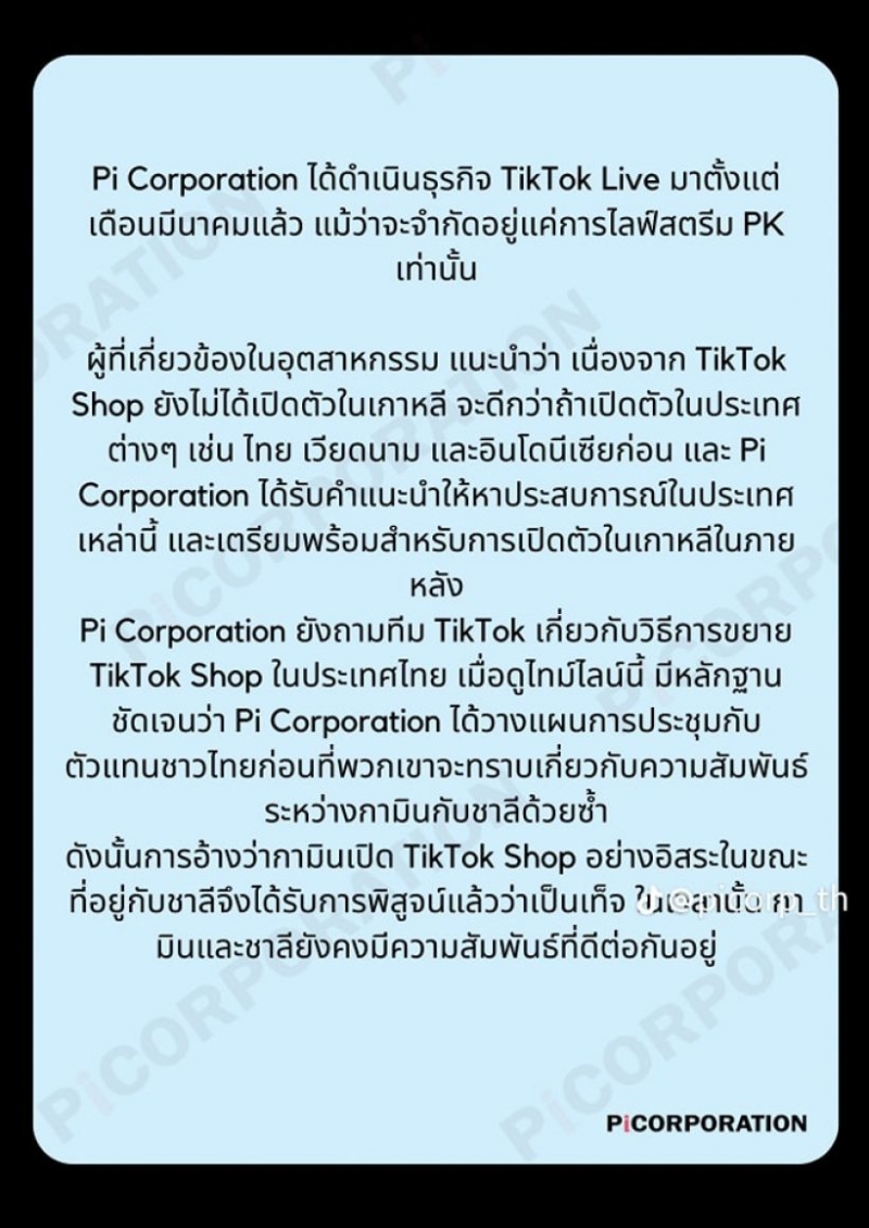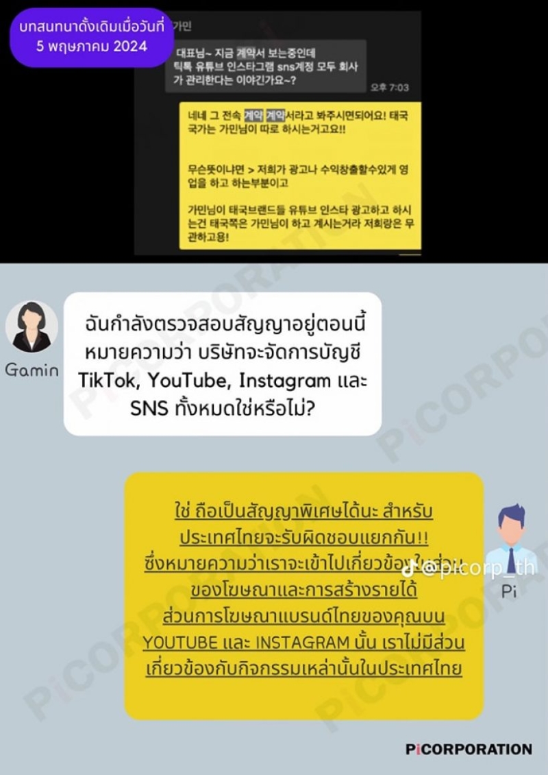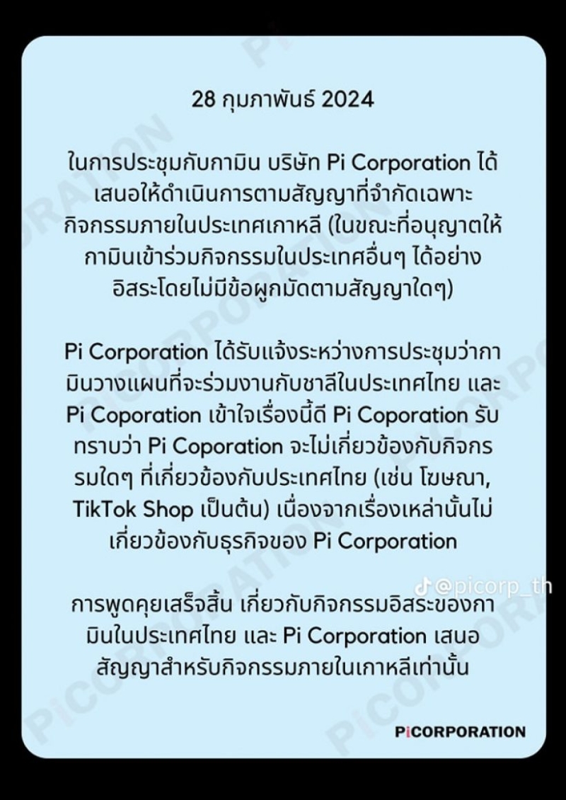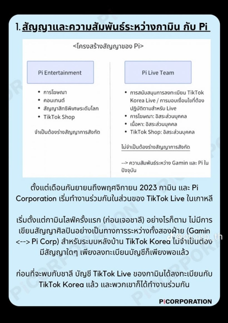 - Pi จะดูแลแค่ในส่วนโฆษณาที่เป็นของเกาหลี แต่ในส่วนที่เป็น Tiktok instragram กามินทำได้อิสระ และรวมไปถึงรายได้จากไลฟ์สตรีมด้วย