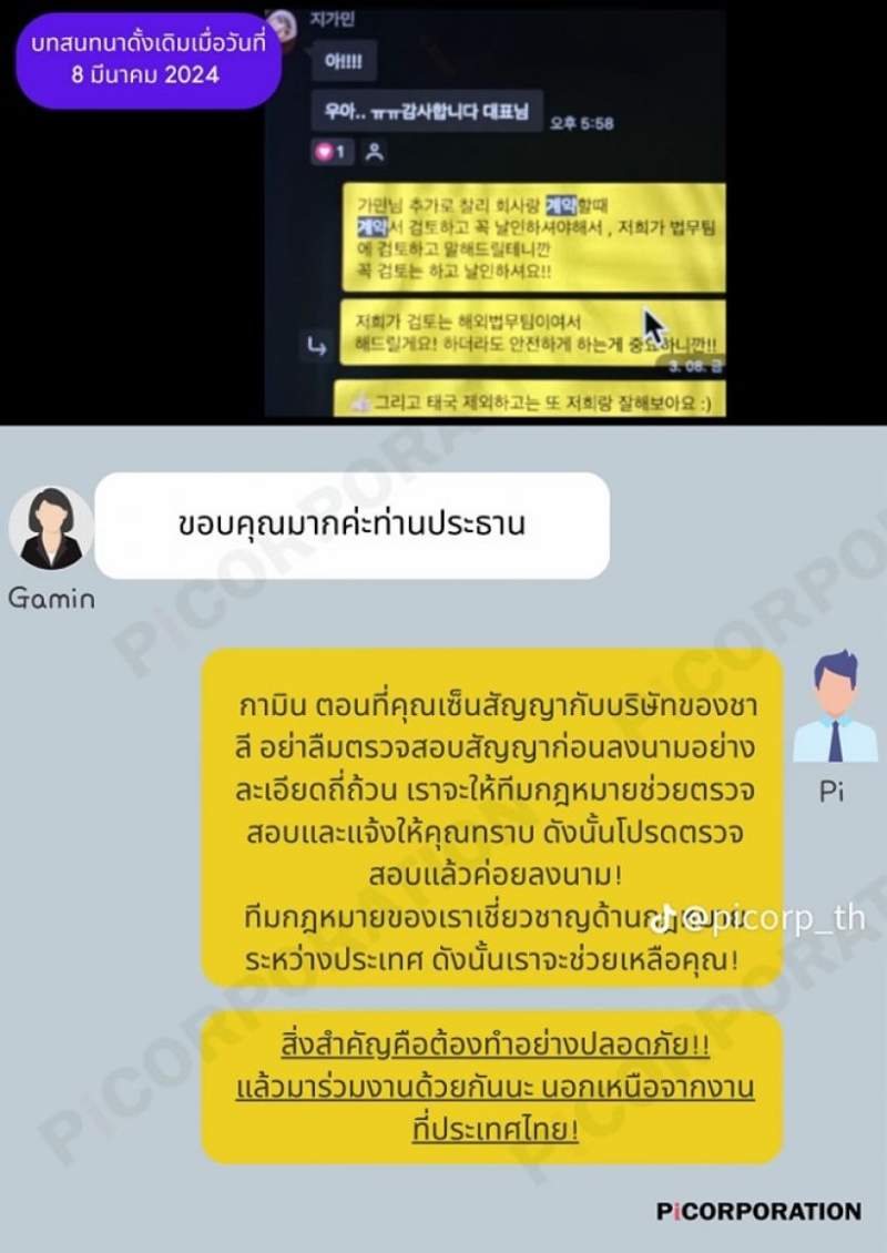 - แต่พอข่าวออกไป Pi ก็โดนถล่มโจมตี ทางกามินก็ทักเข้าไปขอโทษ ส่วน Pi มองว่า ตนยังไม่ได้มีสัญญาร่วมกับกามิน และมองว่ามันเป็นเรื่องส่วนตัว ก็เลยไม่ได้ออกมาแถลง