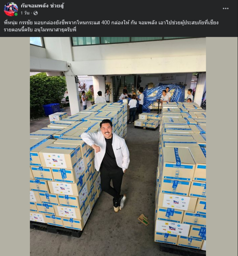 ทางด้าน หนุ่ม กรรชัย ได้ตอบว่า จริงๆ แล้วก็อยากลงนะแต่ ถ้าลงพื้นที่ไปแล้วไปขี่เจ็ตสกีไม่ได้ไป ก็ช่วยเหลือผู้ประสบภัยไม่ได้ จะไปเกะกะเขาเปล่าๆ ตอนนี้คนที่จะลงพื้นที่ขอเป็นคนที่สามารถช่วยเหลือผู้ประสบภัยได้จริงๆ ส่วนใครจะลงไปแจกโน่นแจกนี่เอาไว้หลังจากสถานการณ์ดีขึ้นก่อนค่อยว่ากันอีกที ซึ่งก่อนหน้านี้ หนุ่ม กรรชัย นั้นก็ได้ส่งเสบียงอาหารต่างๆ ฝากไปกับทางด้าน กันจอมพลัง ไปเป็นคันรถเลยทีเดียว
