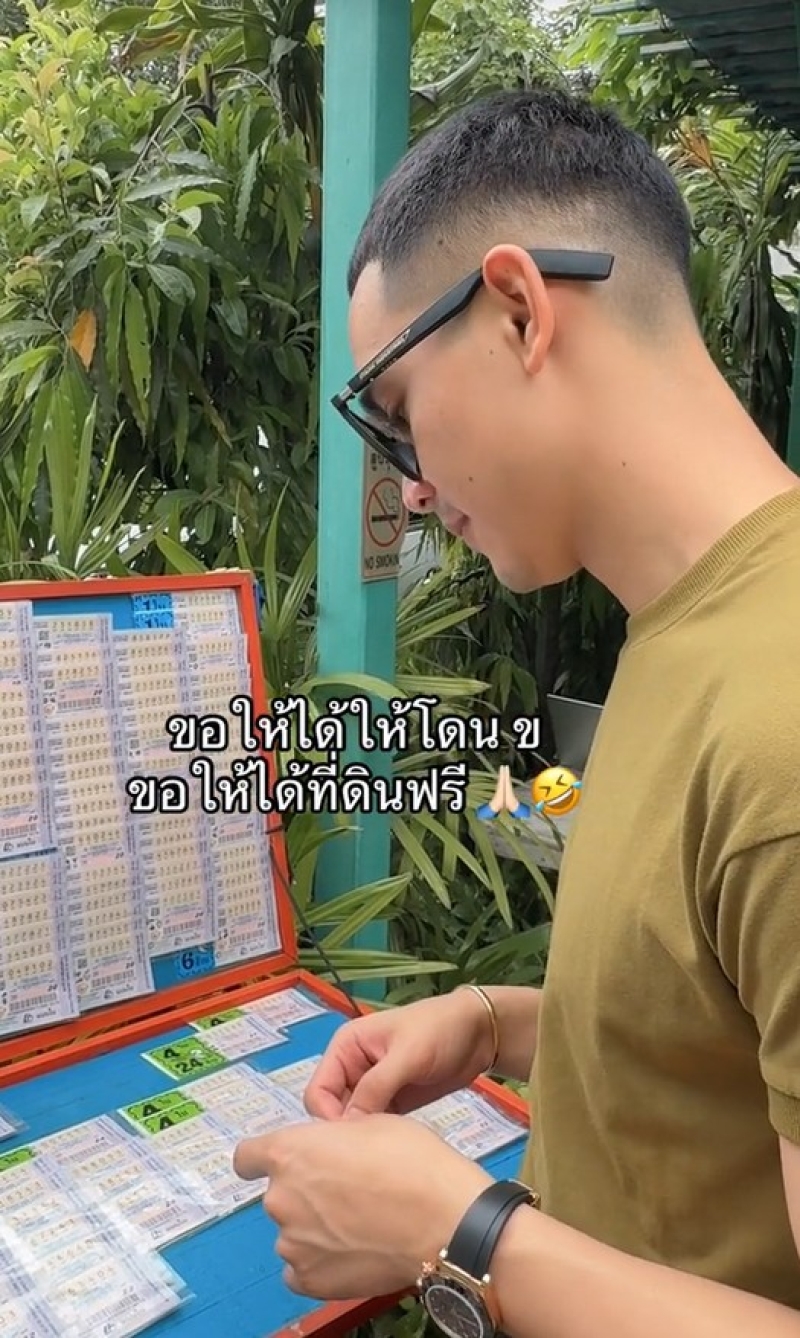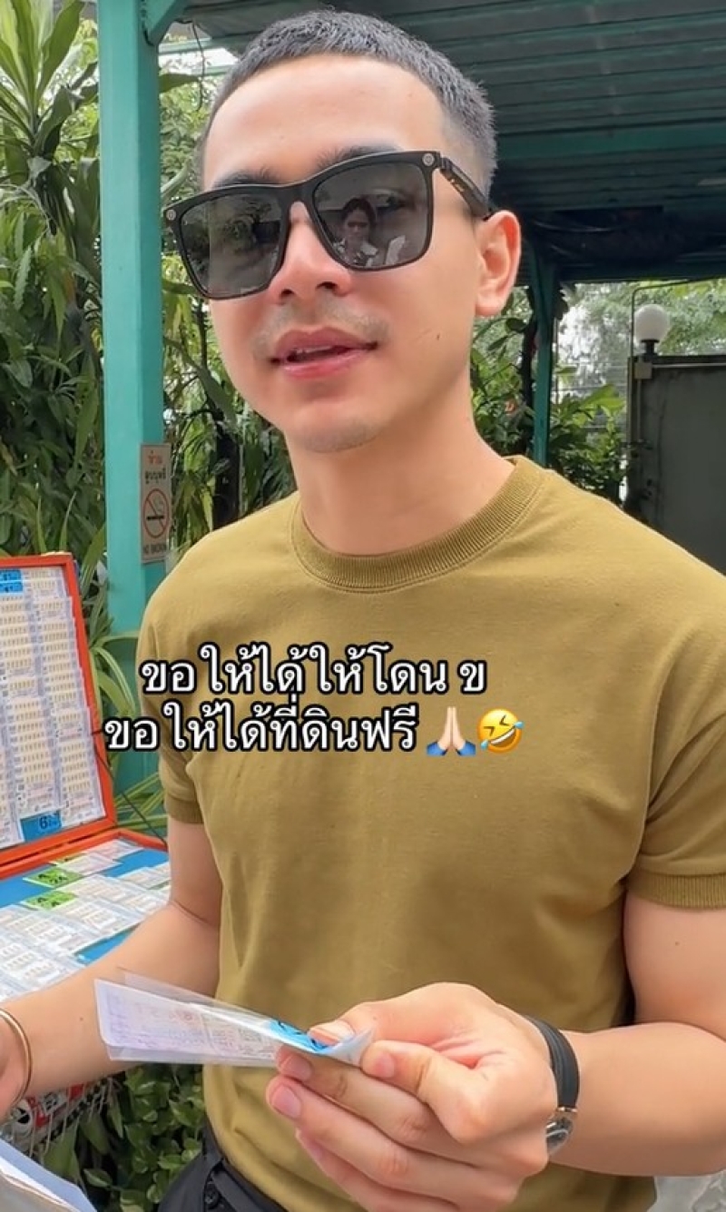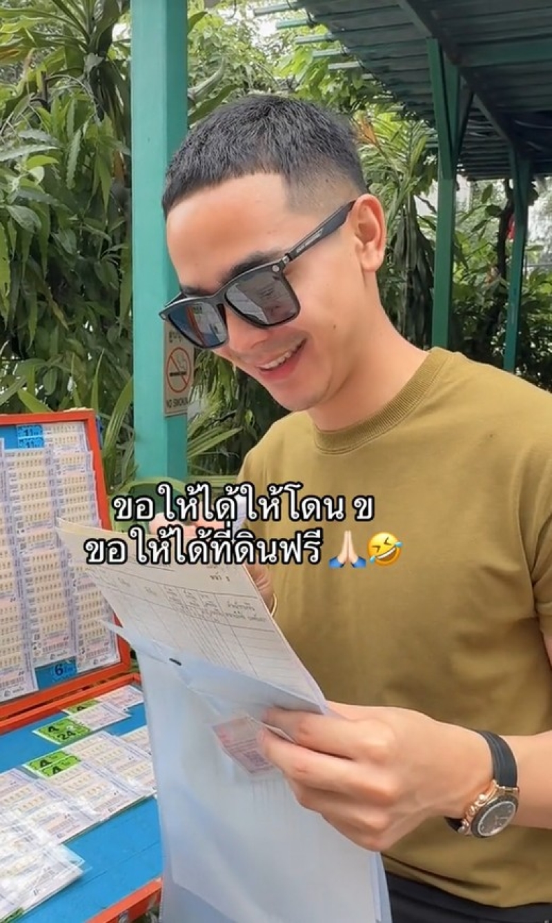 ทั้งนี้ ยิว ยังได้ซื้อเลขลุ้นโชคสลากกินแบ่งรัฐบาลโดยโพสต์คลิปเขียนข้อความว่า ขอให้ได้ ขอให้โดน ขอให้ได้ที่ดินฟรี พร้อมทั้งยังบอกเลขโฉนดที่ดินอีกด้วย ท่ามกลางแฟนๆเข้ามาคอมเมนต์ อาทิ 05ดังมาก..เลขน้องคากิหายากคะ,405ต้องเข้าแล้วป๋า,ตามเลขด้วยคนครับ เป็นต้น