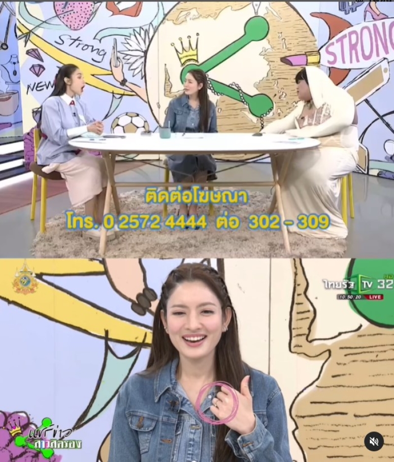 ในคลิป แพทพูดว่าแล่วแม่ล่ะ เห็นใส่แหวนนิ้วนางข้างซ้าย งานนี้เจ้าตัวก็รีบซ่อนมืออย่างรวดเร็ว พร้อมกับบอกสั้นๆ ว่า ไม่มี นั้นของลูกสาว (น้องปีใหม่)ให้มา ด้านพิธีกรร่วม แพทกับปิงปอง รีบ อ้อออออ อย่างเร็วเลย และแพทพูดอีกว่า สวยไงเห็นแล้วมันแววตา