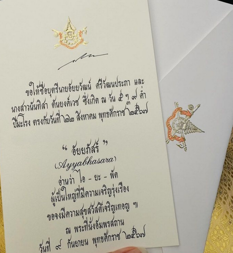 เรียกได้ว่าเป็นอีกหนึ่งเรื่องราวดีๆ เมื่อล่าสุด บิ๊กต๊อบ อัยยวัฒน์ ศรีวัฒนประภา ประธานสโมสรเลสเตอร์ ซิตี กับ ออย นันทิสา ตันยงค์เวช ทายาทชุดนักเรียนตราท็อปสัน ได้รับพระราชทานชื่อบุตรจาก ในหลวงเเละพระราชินี