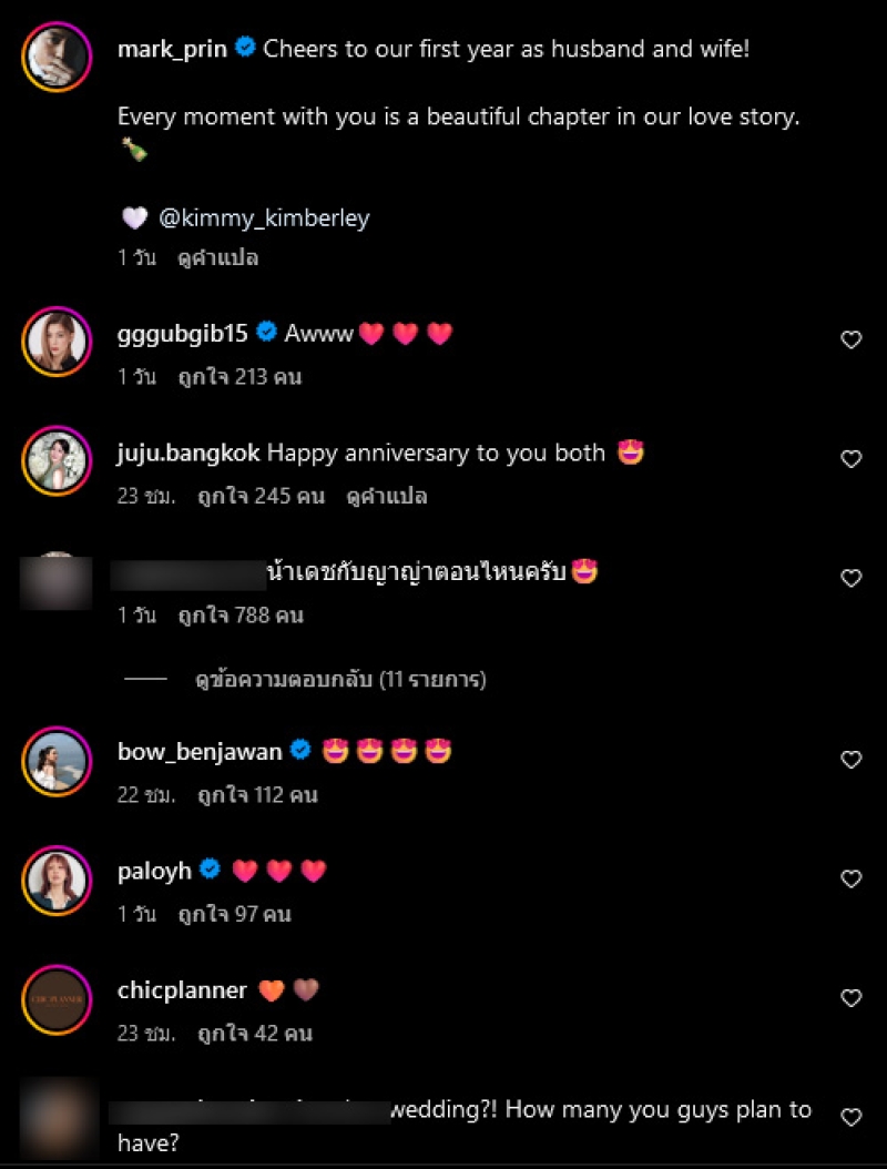 ทางด้านของ คิมเบอร์ลี่ ยังได้ลงคลิปเช่นกัน พร้อมแคปชั่นว่า Happy 1st wedding anniversary baby #markimthewedding ท่ามกลางแฟนๆเข้ามาคอมเมนต์มากมาย