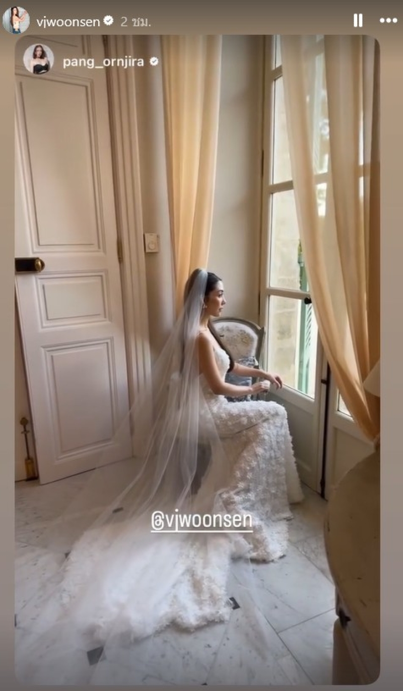 ล่าสุดวันที่ 17 ก.ย. 67 ได้ฤกษ์ดีของงานโดย แป้ง อรจิรา หนึ่งในเพื่อนเจ้าสาวได้เผยภาพที่ วุ้นเส้น วิริฒิพา สวมชุดเจ้าสาวสีนวลขาวเข้ารูป ถูกปักลวดลายดอกไม้ นั่งอยู่ริมหน้าต่าง โดยมีครอบครัวและเพื่อนสนิทมาร่วมเป็นสักขีพยานรักให้อย่างชื่นมื่น