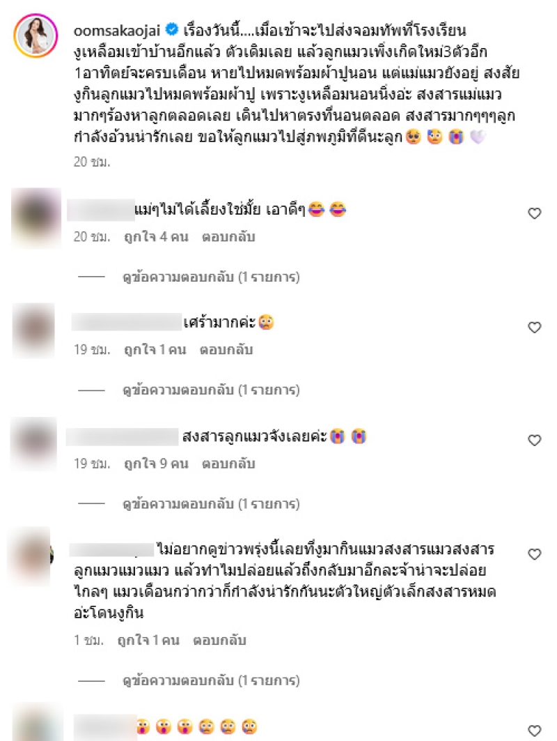 เรียกได้ว่าทำเอาน้ำตาไหลเลยทีเดียวกับเรื่องราวสุดสะเทือนใจสำหรับ อ๋อม สกาวใจ พูนสวัสดิ์ ที่ได้โพสต์เผยเรื่องราวสุดสะเทือนใจ มีงูเข้าบ้าน และลูกแมวหายไป 3 ตัว โดยเผยคลิปช่วงนาทีเจ้าหน้ามาจับงู ผานอินสตาแกรมส่วนตัว พร้อมแคปชั่นระบุว่า
