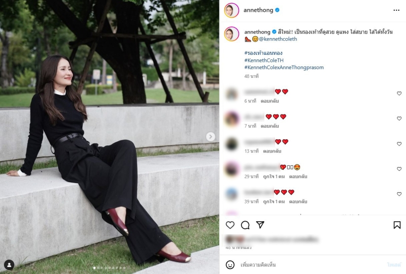 ล่าสุด ทาง แอน ทองประสม ได้เคลื่อนไหวหลังมีกระแสดรามา โดยได้โพสต์ว่า สีใหม่!! เป็นรองเท้าที่ดูสวย ดูแพง ใส่สบาย ใส่ได้ทั้งวัน @kennethcoleth มาในลุคชุดสวยๆ
