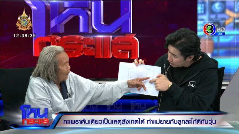 แต่ขณะที่กำลังเดินรายการถึงประเด็นดังกล่าวได้มีสายโทรศัพท์ของลูกชายคนที่2ของคุณยาย ทำให้ หนุ่ม กรรชัย ถึงกับเดือดกลางรายการ โดยมีการกล่าวหาว่า