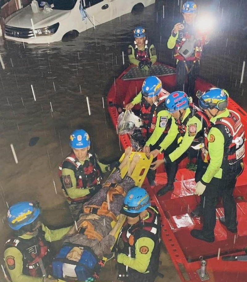 เรียกได้ว่าเป็นอีกหนึ่งข่าวร้ายเมื่อกลางดึกของวันที่ 12 กันยายน 2567 เจ้าหน้าที่กู้ชีพ-กู้ภัย หนึ่งในนั้นคือ แทค ภรัณยู ได้นำกำลังพร้อมรถพยาบาลเข้าช่วยเหลือ เเม่เฒ่าอายุ 102 ปี อดข้าวอดน้ำมาหลายชั่วโมงติดน้ำท่วมอยู่ในบ้านและเป็นลมลื่นล้มได้รับบาดเจ็บ ที่ อ.แม่สาย จ.เชียงราย โดยตอนนั้นได้นำออกมาอย่างปลอดภัยเเล้ว