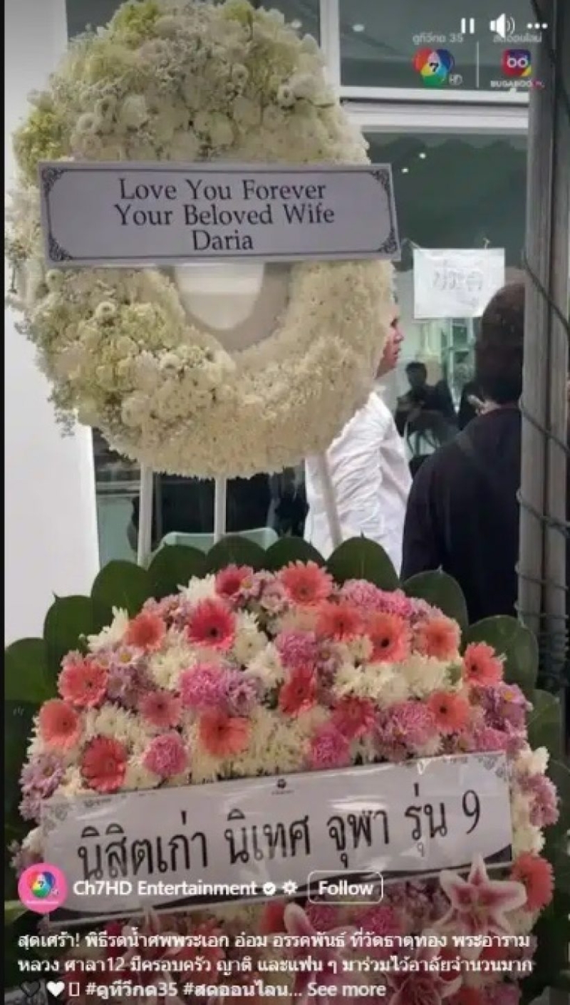 แม้สถานะฉันสามีภรรยาจะยังไม่เคยถูกเปิดเผยต่อสาธารณะอย่างเป็นทางการ แต่ในช่วงพิธีบำเพ็ญกุศลสาวดาเรียก็ทำหน้าที่การเป็นเจ้าภาพได้อย่างดี ซึ่งหนึ่งในเรื่องสุดเศร้าก็คือข้อความสุดท้าย บนพวงหรีด จากสาวดาเรียที่ระบุข้อความไว้ว่า Love You Forever Your Beloved Wife Daria รักคุณตลอดไป จากดาเรีย ภรรยาสุดที่รักของคุณ