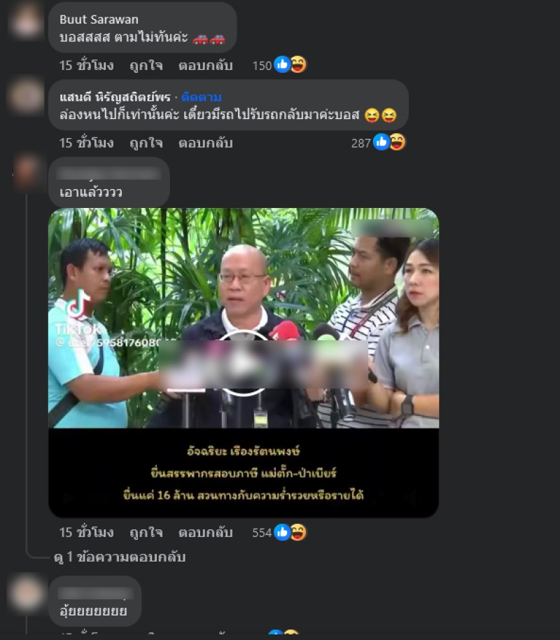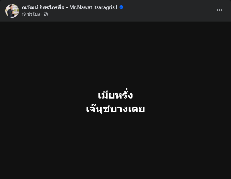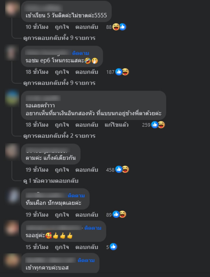 ล่าสุด บอส ณวัฒน์ ได้โพสต์ข้อความผ่านเฟซบุ๊คส่วนตัวว่า เมียหรั่ง เจ๊นุชบางเตย ต่อมาได้โพสต์อีกว่า รถล่องหน ทำเอาแฟนๆเข้ามาคอมเมนต์กันสนั่นมาก อาทิ เข้าเรียน 5 วันติดค่ะไม่ขาดค่ะ5555,รอชม ep6 โหนกระแสคะ,ตามค่ะ แก็งค์เดียวกัน,ทีมเผือก ปักหมุดเลยค่ะ เป็นต้น