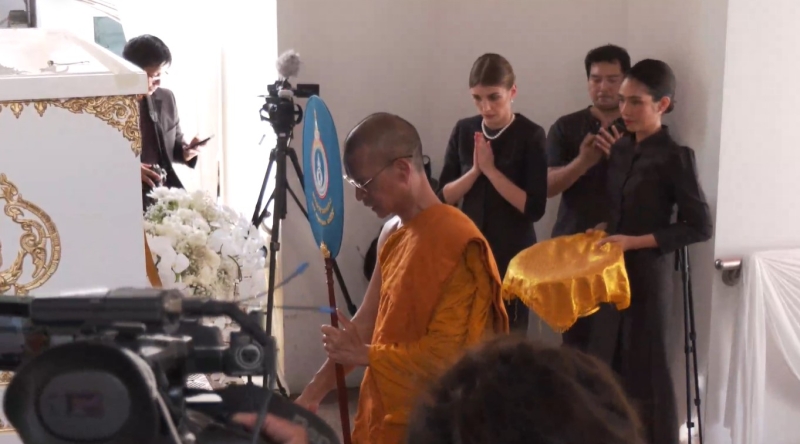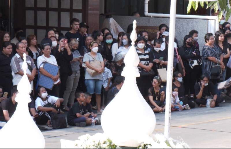 โดยในบรรยายกาศวันนี้นั้น ต่างก็มีเหล่าดาราและแฟนๆมาร่วมพิธี เพื่อส่งอ๋อมเป็นครั้งสุดท้าย ซึ่งในงานทั้งครอบครัวและแฟนๆ ต่างโศกเศร้ากันจำนวนมาก และในด้านภรรยาของอ๋อม ก็ร่ำไห้ และเศร้ามาก ร่วมไปถึงคุณพ่อและแม่ของดาเรียด้วยนั่นเอง