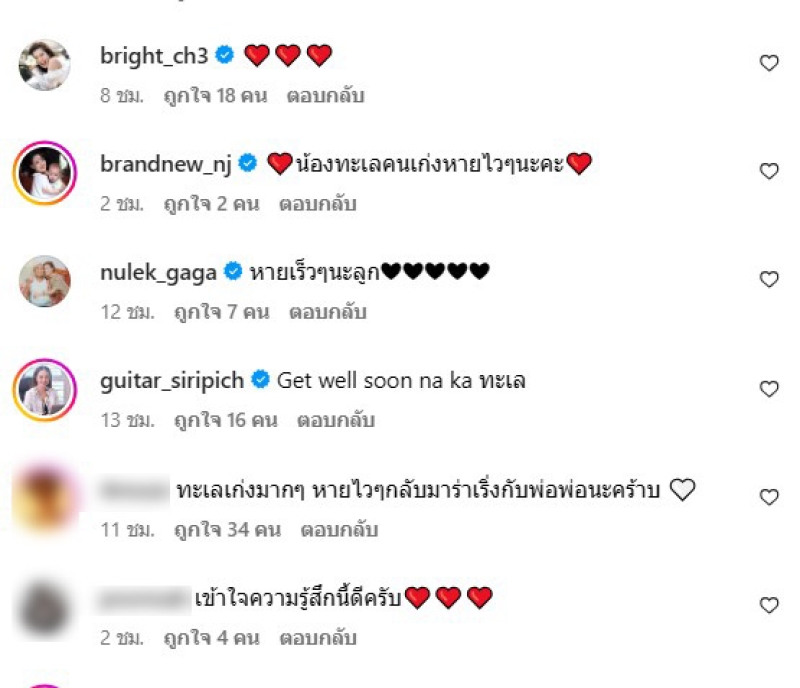 งานนี้ คนในวงการและแฟนๆต่างก็เข้ามาให้กำลังใจ และขอให้น้องทะเลหายป่วยเร็วๆนั่นเอง