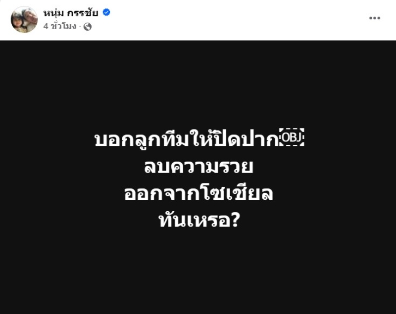 และโพสต์ต่อว่า บอกลูกทีมให้ปิดปาก ลบความรวย ออกจากโซเชียล ทันเหรอ?
