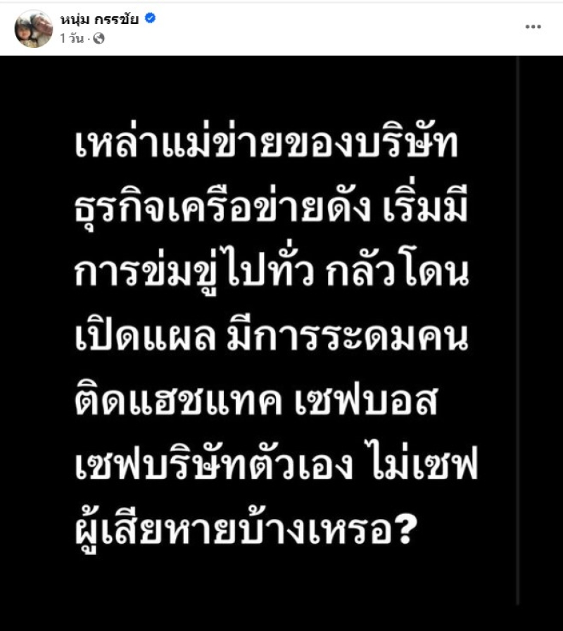จากกรณีที่ก่อนหน้านั้น ด้านพิธีกรชื่อดัง อย่าง หนุ่ม กรรชัย ได้ออกมาพูดเกี่ยวกับ บริษัทดังแห่งหนึ่ง ที่ใช้ดาราดังเป็นพ่อข่ายแม่ข่าย ทำให้มีผู้เสียหายจำนวนมาก ล่าสุด ทาง หนุ่ม กรรชัย ได้ออกมาเตือนถึงประชาชน โดยได้บอกว่า