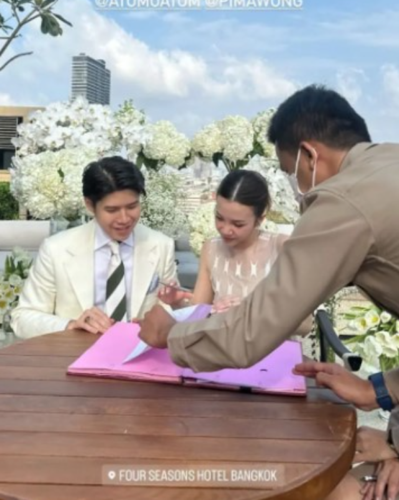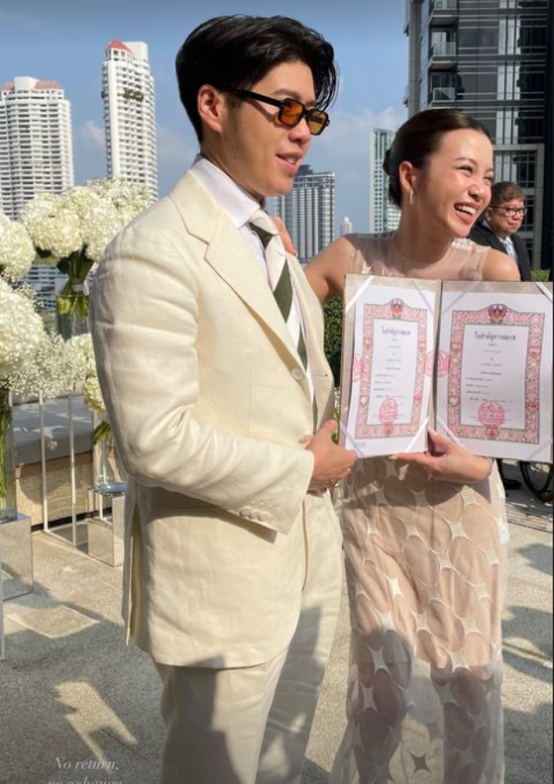ล่าสุด ทั้งคู่ได้ควงแขนเข้าประตูวิวาห์แล้ว เมื่อวันที่ 5 กุมภาพันธ์ 2567 ที่โรงแรม Four Seasons Hotel Bangkok ซึ่งพิธีการเป็นไปอย่างเรียบง่ายและอบอุ่น มีเพื่อนและญาติคนสนิทมาร่วมเป็นสักขีพยานรัก ซึ่งได้ จดทะเบียนสมรสต่อหน้าแขกทุกคนอีกด้วย ทางทีมข่าวขอแสดงความยินดีด้วยนะคะ