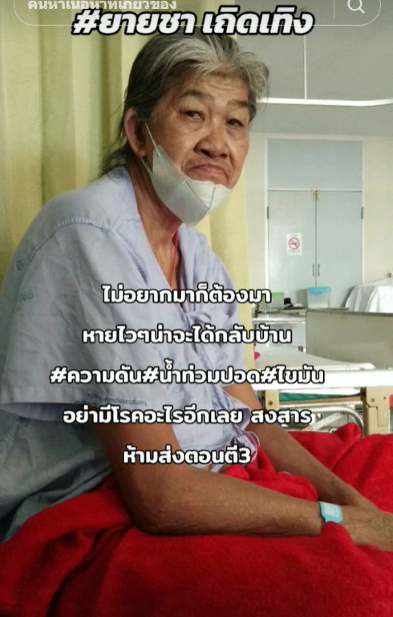 โดยได้เผยคลิปผ่านทาง TikTok @ยายชา เถิดเทิง ได้เผยว่า ไม่อยากมาก็ต้องมา หายไวๆ น่าจะได้กลับบ้าน #ความดัน #น้ำท่วมปอด #ไขมัน อย่ามีโรคอะไรอีกเลยสงสาร หามส่งตอนตี 3