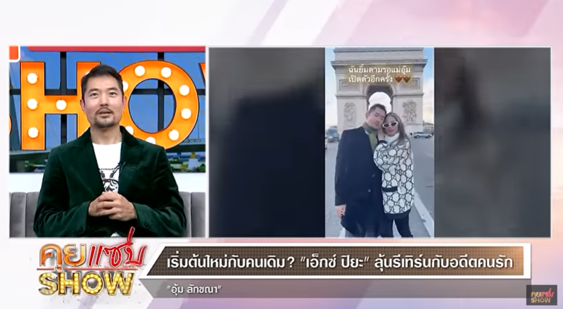พิธีกร : ล่าสุดไปเที่ยวฝรั่งเศสกัน 3 คน อุ้ม ลักขณา น้องดิสนีย์ และคุณเอ็กซ์ ซึ่งเขาเคยเป็นอดีตกันด้วย ทำไมถึงไปด้วยกัน?