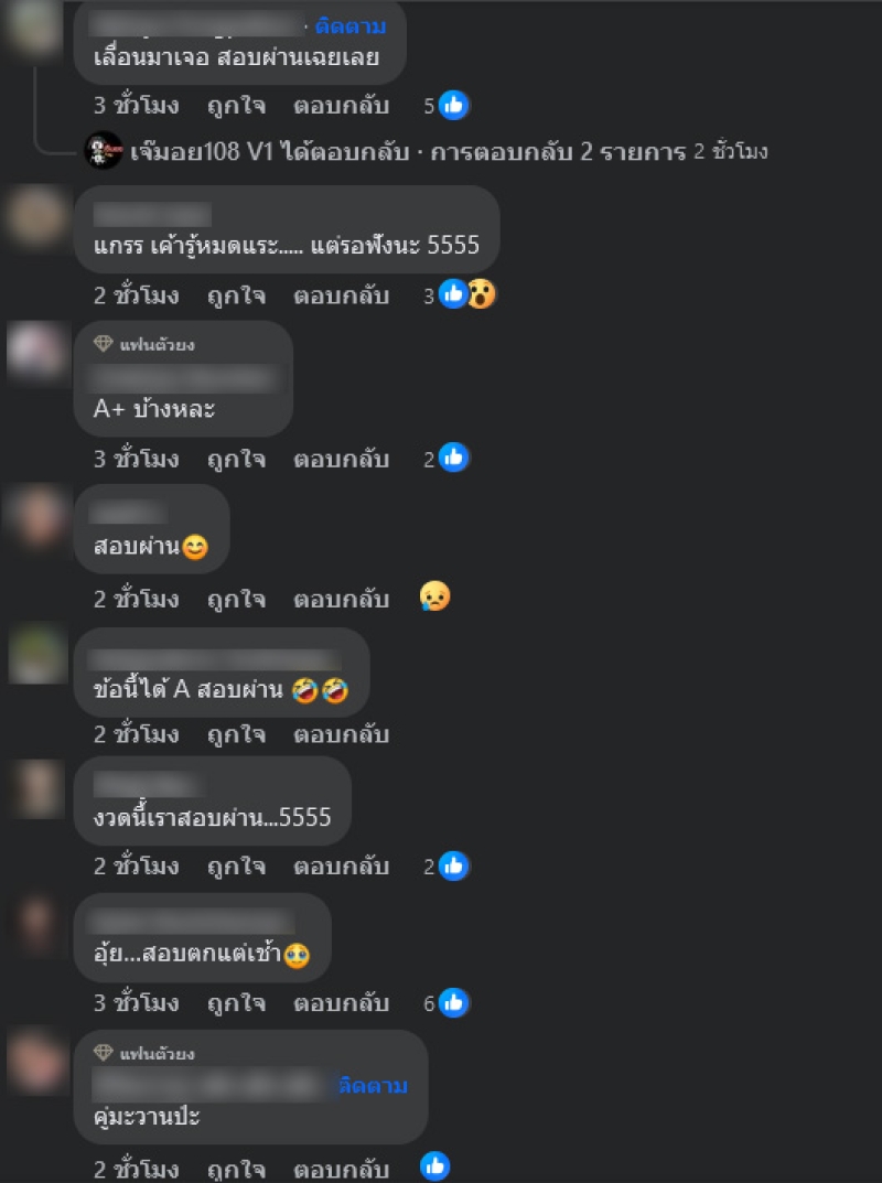 ท่ามกลางแฟนๆเข้ามาคอมเมนต์กันอย่างมาก อาทิ สาวที่ออกมาไลพ์ ใช่ บ่ แอด,วันนี้ฉันสอบผ่าน555,คิดว่าใช่ แต่ขอฟังนิทานก่อนนนน,เขากิ๊กกันมานานละ แวดวง แม่บ้าน รุ่น4.. เขารู้กันนน,แกรร เค้ารู้หมดแระ..... แต่รอฟังนะ 5555,ข้อนี้ได้ A สอบผ่าน เป็นต้น
