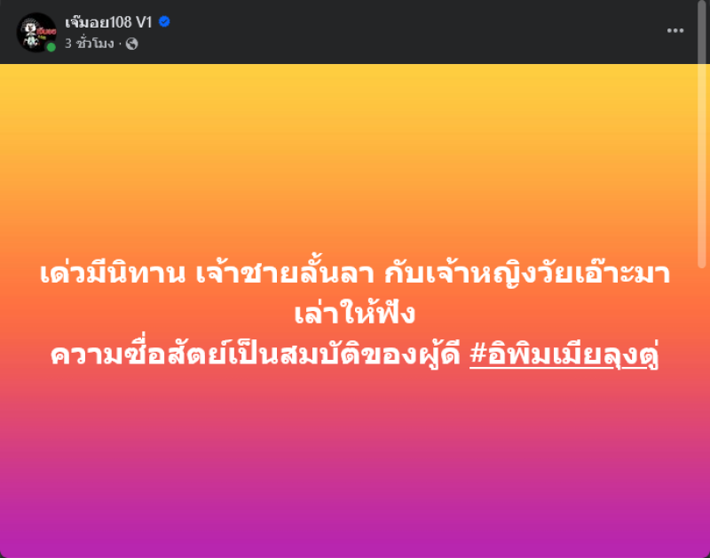 เรียกได้ทำเอาแฟนๆชาวขาเผือกสะเทือนกันเลยทีเดียวเมื่อล่าสุดทางด้านเพจเจ๊มอย108 V1 ได้โพสต์ใบ้เจ้าชายลั้นลา กับเจ้าหญิงวัยเอ๊าะ ว่า เดี๋ยวมีนิทาน เจ้าชายลั้นลา กับเจ้าหญิงวัยเอ๊าะมาเล่าให้ฟัง ความซื่อสัตย์เป็นสมบัติของผู้ดี #อิพิมเมียลุงตู่