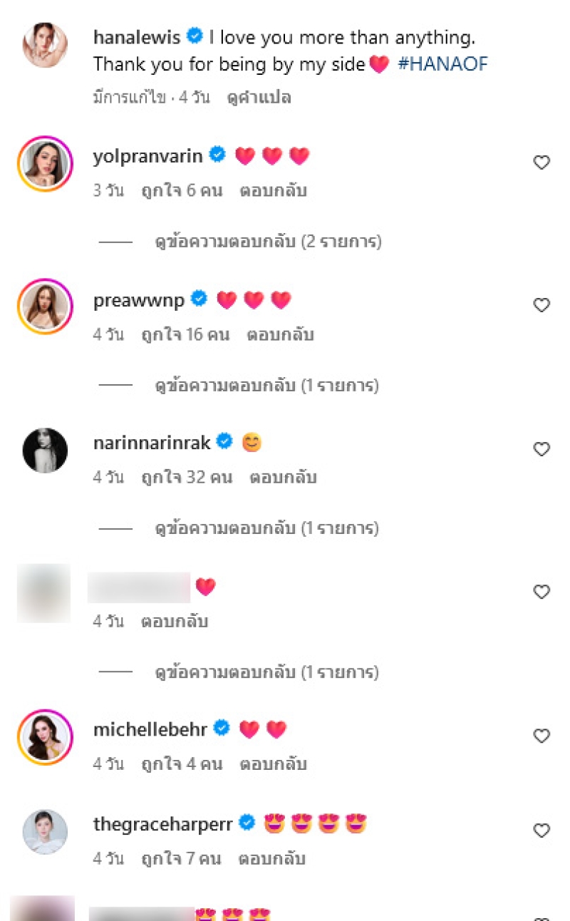 ล่าสุด ฮาน่า ได้ออกมาโพสต์ภาพพรีเวดดิ้งสุดน่ารักผ่านอินสตาแกรมส่วนตัว พร้อมเขียนแคปชั่นว่า I love you more than anything. Thank you for being by my side #HANAOF