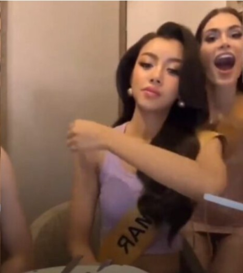 และก็ไม่วายดรามาต่อ เพราะได้มีชาวเน็ตไปขุดคลิป วีรกรรมของนางงามเมียนม่าคนนี้ ตอนที่กำลังประกวดและเก็บตัว โดยที่เธอกำลังไลฟ์สดคุยกับแฟน ๆ เมื่อ 17 ตุลาคม ที่ผ่านมา มีเพื่อนนางงามมิสแกรนด์เวเนซุเอลา เดินเข้ามาโบกมือทักทายแฟน ๆ ในไลฟ์ของเมียนม่า แต่เธอกลับเบี่ยงตัวออกและลุกขึ้นยืนหยิบโทรศัพท์มือถือหนีเพื่อนงามเพื่อไม่ให้ทักทายแฟนๆ ในช่องของเธอ