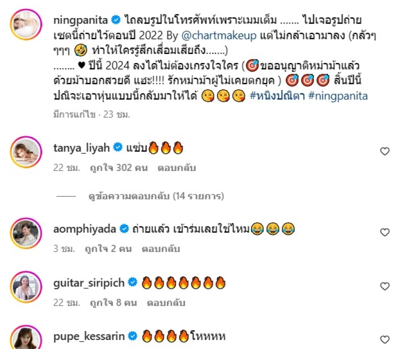 เรียกได้ว่า เป็นนางร้าน-ผู้จัดชื่อดัง อย่าง หนิง ปณิตา คุณแม่ลูกหนึ่ง ที่ทั้งโสดและแซ่บมากๆตอนนี้ ล่าสุดเจ้าตัว ออกมาเผยรูปใส่ชุดว่ายน้ำสุดแซ่บ ผ่านทางอินสตาแกรม พร้อมระบุแคปชั่นว่า ไถลบรูปในโทรศัพท์เพราะเมมเต็ม ……. ไปเจอรูปถ่ายเซตนี้ถ่ายไว้ตอนปี 2022 By @chartmakeup แต่ไม่กล้าเอามาลง (กลัวๆๆๆๆ ทำให้ใครรู้สึกเสื่อมเสียถึง…….) ปีนี้ 2024 ลงได้ไม่ต้องเกรงใจใคร (ขออนุญาติหม่าม้าแล้วด้วยม้าบอกสวยดี แฮะ!!!! รักหม่าม้าผู้ไม่เคยตกยุค ) สิ้นปีนี้ปณิจะเอาหุ่นแบบนี้กลับมาให้ได้ #หนิงปณิตา #ningpanita