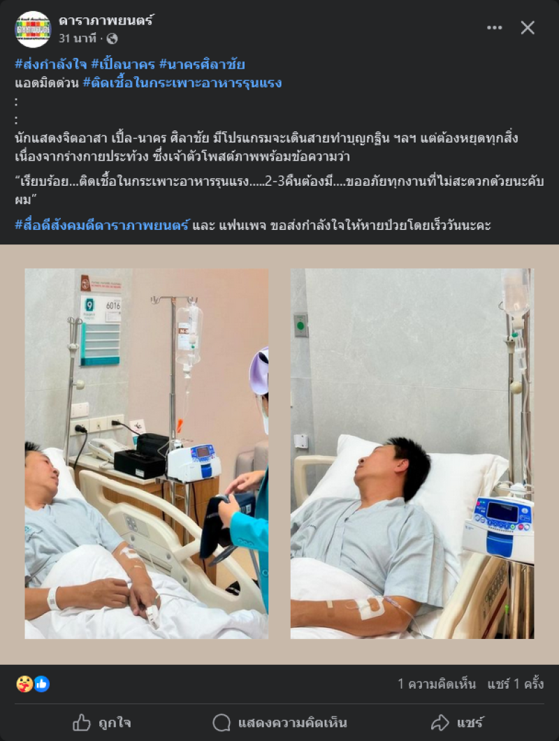 ล่าสุดทางด้านเพจดาราภาพยนตร์ ได้โพสต์ภาพพร้อมข้อความ เปิ้ล นาคร ว่า #ส่งกำลังใจ #เปิ้ลนาคร #นาครศิลาชัย แอดมิดด่วน #ติดเชื้อในกระเพาะอาหารรุนแรง นักแสดงจิตอาสา เปิ้ล-นาคร ศิลาชัย มีโปรแกรมจะเดินสายทำบุญกฐิน ฯลฯ แต่ต้องหยุดทุกสิ่ง เนื่องจากร่างกายประท้วง ซึ่งเจ้าตัวโพสต์ภาพพร้อมข้อความว่า เรียบร้อย ติดเชื้อในกระเพาะอาหารรุนแรง..2-3คืนต้องมี.ขออภัยทุกงานที่ไม่สะดวกด้วยนะคับผม