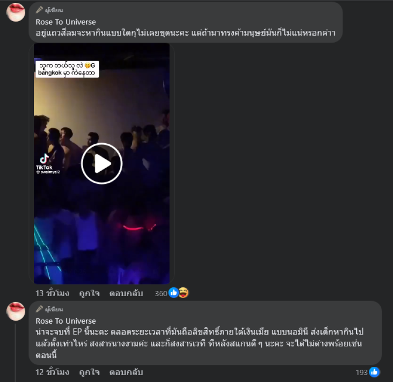 - น่าจะจบที่ EP นี้นะคะ ตลอดระยะเวลาที่มันถือลิขสิทธิ์ภายใต้เงินเมีย แบบนอมินี ส่งเด็กหากินไปแล้วตั้งเท่าไหร่ สงสารนางงามค่ะ และก็สงสารเวที ทีหลังสแกนดีๆ นะคะ จะได้ไม่ด่างพร้อยเช่นตอนนี้