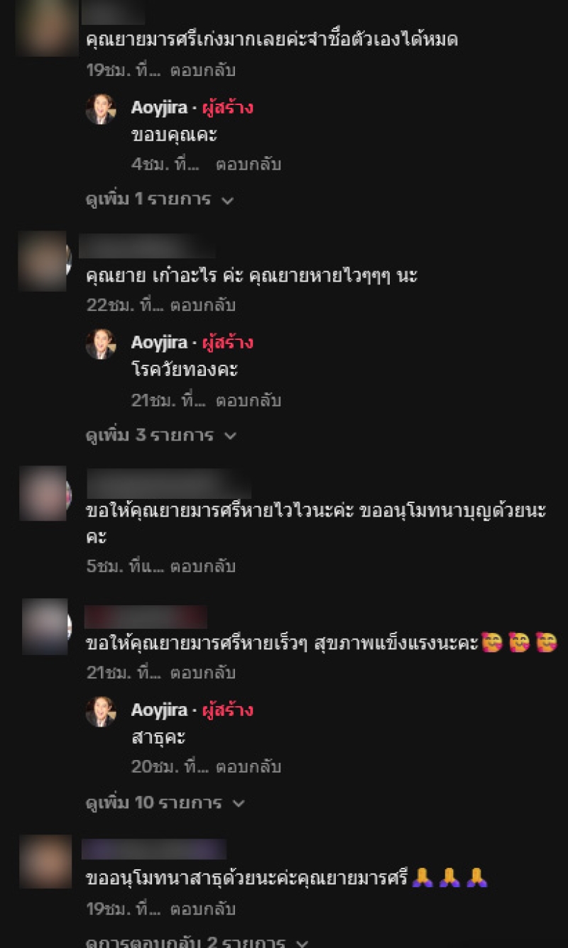 และได้นำผ้าไตรจีวรมาให้คุณแม่อนุโมทนาบุญเนื่องจากเป็นเจ้าภาพบวชพระ 1 รูป และในวันเกิดปีนี้ คุณยายมารศรี ยังเป็นเจ้าภาพทอดกฐินร่วมที่ จ.อยุธยา โดย อ้อย จิระวดี ได้เป็นตัวแทนคุณแม่ไปทำบุญใหญ่ทั้ง 2 ที่ เมื่อได้มีชาวเน็ตถามว่า คุณยายเก๋าอะไรค่ะ คุณยายหายไวๆๆนะ ทางด้าน อ้อย จิระวดี ได้ตอบกลับว่า โรควัยทองค่ะ ท่ามกลางแฟนๆเข้ามาให้กำลังใจกันเป็นอย่างมาก