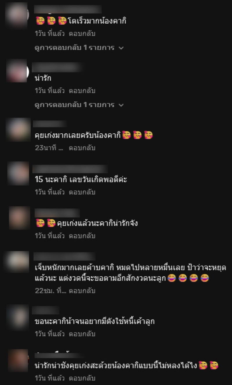 ล่าสุด ย่าเปิ้ล ได้โพสต์คลิปขณะคุยเล่นกับน้องคากิ พร้อมตีเลขบอกแฟนๆถึงงวดที่ 1 พ.ย. 67 อีกด้วย ซึ่งคือเลข 15 พร้อมทั้งยังบอกอีกว่า ไม่ถูกอย่าว่ากัน ท่ามกลางแฟนๆเข้ามาคอมเมนต์มากมาย อาทิ โตเร็วมากน้องคากิ,คุยเก่งมากเลยครับน้องคากิ,15 นะคากิ เลขวันเกิดพอดีค่ะ,ขอนะคากิน้าจนอยากมีตังใช้หนี้เค้าลูก เป็นต้น