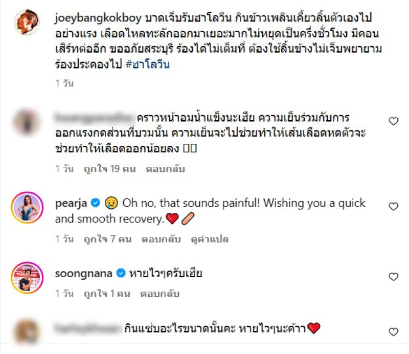 เรียกได้ว่า เป็นนักร้องแร็ปเปอร์ชื่อดัง อย่าง โจอี้ บอย ที่พึ่งประกาศว่ากำลังจะเป็นคุณพ่อป้ายแดงแล้ว หลังแต่งงานได้ไม่นาน แต่ล่าสุด ทำเอาแฟนๆแทบช็อก เมื่อโจอี้ ได้ออกมาโพสต์ผ่านอินสตาแกรมส่วนตัว พร้อมระบุข้อความว่า บาดเจ็บรับฮาโลวีน กินข้าวเพลินเคี้ยวลิ้นตัวเองไปอย่างแรง เลือดไหลทะลักออกมาเยอะมากไม่หยุดเป็นครึ่งชั่วโมง มีคอนเสิร์ทต่ออีก ขออภัยสระบุรี ร้องได้ไม่เต็มที่ ต้องใช้ลิ้นข้างไม่เจ็บพยายามร้องประคองไป #ฮาโลวีน