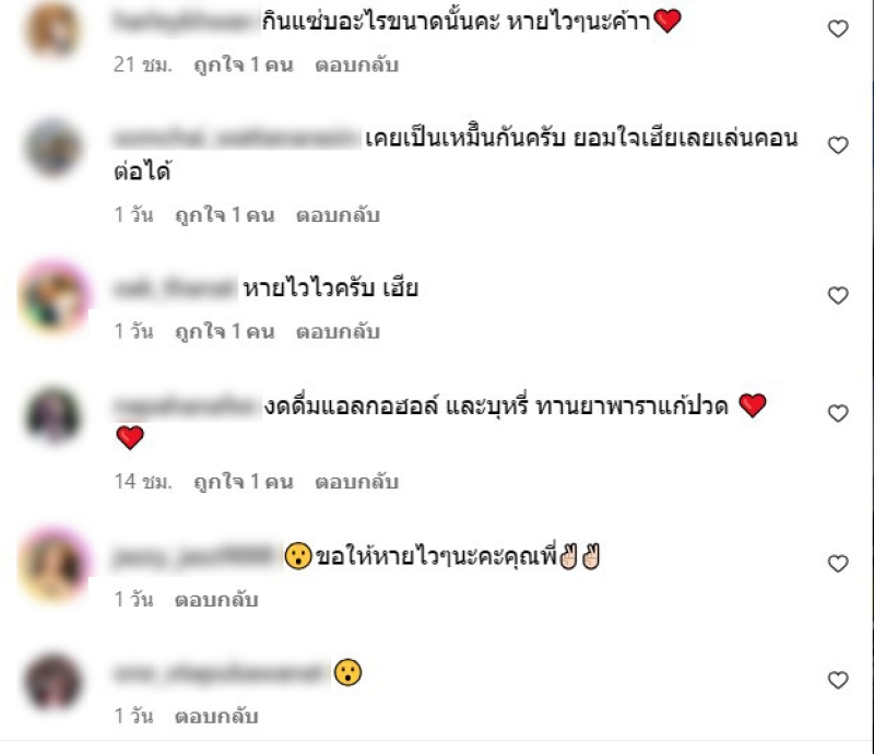 ท่ามกลาง เพื่อนๆและแฟนๆเข้ามาส่งกำลังใจ และห่วยใยกันจำนวนมาก