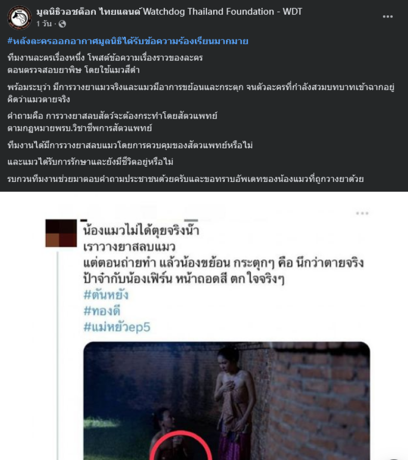 เรียกได้ว่ากระเเสดราม่าที่ดูเหมือนจะไม่จบง่ายๆเเล้วสำหรับดราม่าละครเรื่อง แม่หยัว ที่บางฉากได้วางยาสลบแมว เพื่อเป็นฉากสำคัญ โดยล่าสุดทางด้าน มูลนิธิวอชด็อก ไทยแลนด์ จ่อฟ้อง ทารุณสัตว์ โดยมูลนิธิวอชด็อกระบุว่า