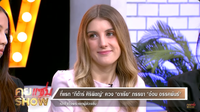 ดาเรีย : เจอกันที่ร้านอาหาร พี่อ๋อมน่ารักมาก ไม่ได้บอกด้วยว่าเป็นดารา แต่ก่อนหน้านั้นไปที่วัดมาก่อน แล้วพระท่านทักว่า เดี๋ยวจะได้สามีเป็นคนไทย ซึ่งตอนนั้นยังไม่ได้เจอกัน มาเจอกันที่ร้านอาหาร พี่อ๋อมเป็นคนมาเริ่มพูดคุยก่อน