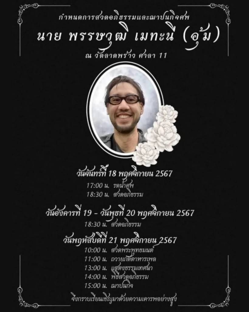 ท่ามกลางความโศกเศร้าเสียใจของครอบครัวเเละบรรดาแฟนคลับสำหรับการจากไปของอดีตนักร้องนักแสดง อุ้ม พรรษวุฒิ เมทะนี ที่เสียชีวิต เมื่อวันที่ 17 พ.ย.67 หลังจากป่วยด้วยโรคมะเร็งมานาน ซึ่ง อุ้ม พรรษวุฒิ เป็นบุตรชายพระเอกตลอดกาล พ่อแอ๊ด สมบัติ เมทะนี ศิลปินแห่งชาติผู้จากไป