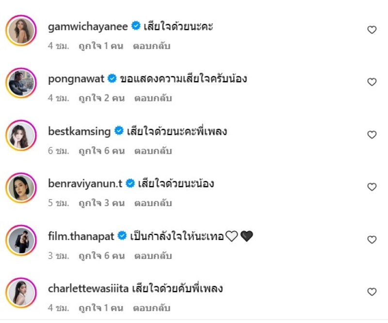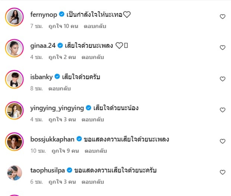 ท่ามกลาง เหล่าเพื่อนๆในวงการบันเทิงเข้ามาแสดงความเสียใจและให้กำลังใจกัน และทางทีมข่าวก็ขอแสดงความเสียใจด้วยนะคะ
