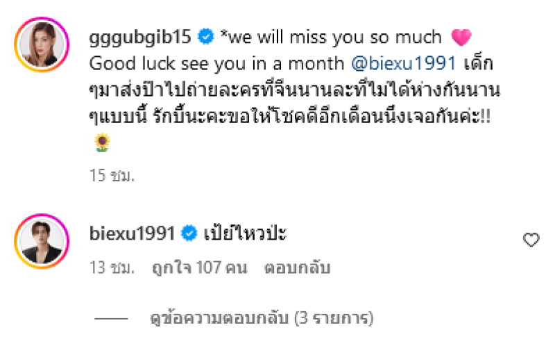 ล่าสุดภรรยา กุ๊บกิ๊บ สุมณทิพย์ และลูกสาวทั้ง 2 เป่าเปา,เป่าเป้ย์ ได้เดินทางไปส่งบี้ที่สนามบินเพื่อไปถ่ายละครที่จีน พร้อมยังระบุด้วยว่า we will miss you so much Good luck see you in a month @biexu1991 เด็กๆมาส่งป๊าไปถ่ายละครที่จีนนานละที่ไม่ได้ห่างกันนานๆแบบนี้ รักบี้นะคะขอให้โชคดีอีกเดือนนึงเจอกันค่ะ