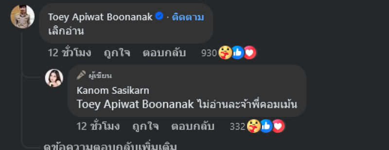 ลองปล่อยใจให้สบาย ทำเท่าที่เราทำได้ แล้วที่เหลือจะเป็นอย่างไรก็ค่อยๆปรับตัวตามแต่ละสถานการณ์แล้วกัน เราจะเกิดมาแบบไม่เคยเปียกฝนกันเลยหรอ มันเป็นไปไม่ได้หรอกมั้ง งานนี้ทางด้าน ครูเต้ย รีบเข้ามาคอมเมนต์ทันทีว่า เลิกอ่าน ขนมตอบกลับบอกว่า ไม่อ่านละจ้าพี่คอมเม้น