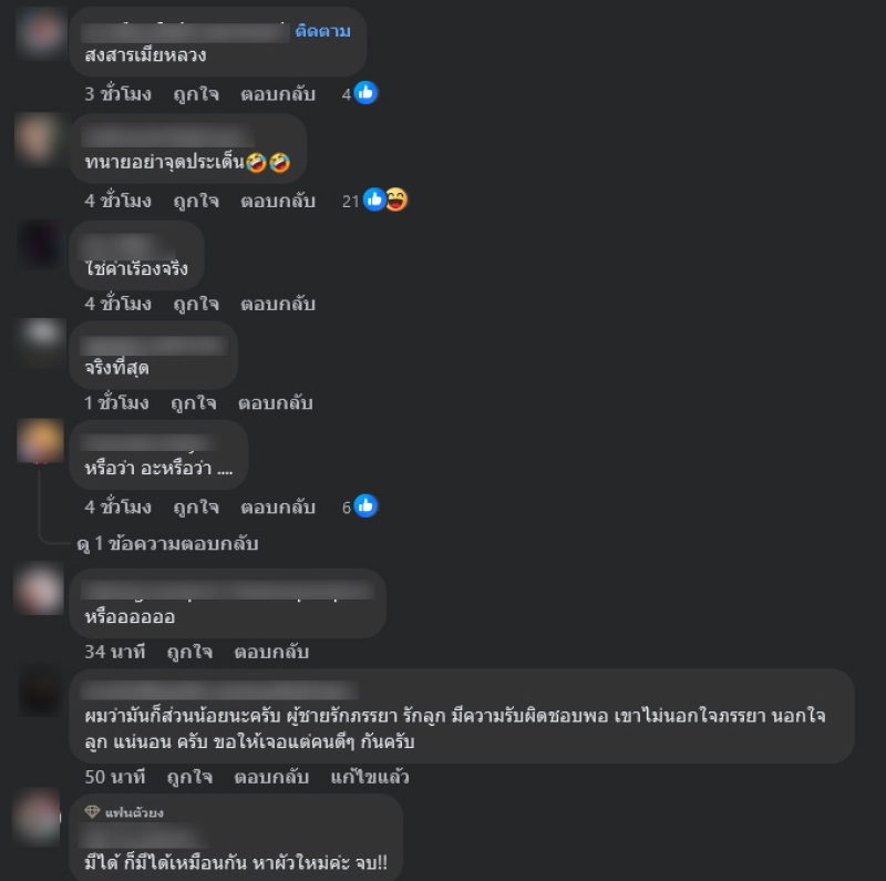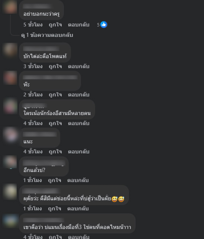 ท่ามกลางแฟนๆเข้ามาคอมเมนต์กันอย่างมาก อาทิ อย่าบอกนะว่าครู,ใครเน้อนักร้องอีสานมีหลายคน,อีกแล้วบ่?,เลิกกันก็แค่เรื่องนี้แหละนะสำหรับคนเพิ่งมีลูก เยอะมากสังคมไทย รวมถึงตัวฉันเอง,ทนายอย่าจุดประเด็น,หรือว่า อะหรือว่า เป็นต้น