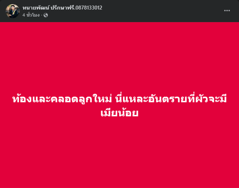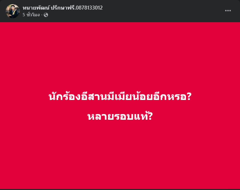 เรียกได้ว่าทำเอาแฟนๆต่างพากันฮือฮากันอย่างมากเมื่อทางด้านทนายพัฒน์ หรือ ทนายพัฒน์ ได้โพสต์เปิดประเด็นสงสัยนักร้องหนุ่มดัง โดยโพสต์ผ่านเฟซบุ๊ค ทนายพัฒน์ ปรึกษาฟรี.0878133012 พร้อมเขียนโพสต์ว่า นักร้องอีสานมีเมียน้อยอีกหรอ? หลายรอบแท้? ต่อมาได้โพสต์อีกว่า ท้องและคลอดลูกใหม่ นี่แหละอันตรายที่ผัวจะมีเมียน้อย